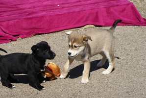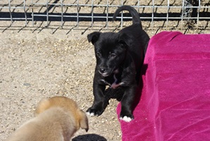 Donald entwickelt sich Welpen typisch, hat allerlei Flausen im Kopf, spielt mit allem und jedem, ist freundlich und genießt die Zuwendung vom Team.